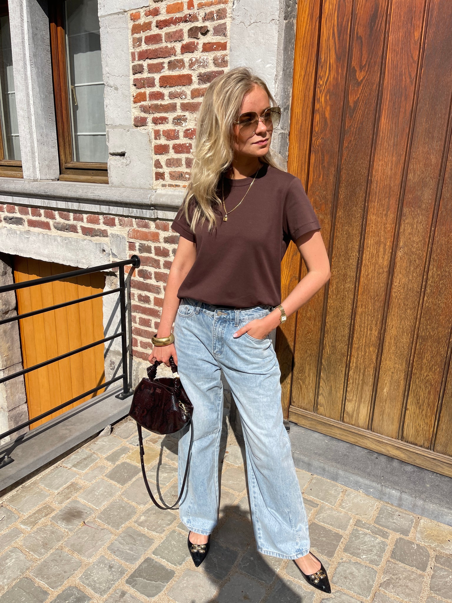Lieze (kort haar) draagt een 36 op de foto, haar normale maat in dit merkje, Oraije.
