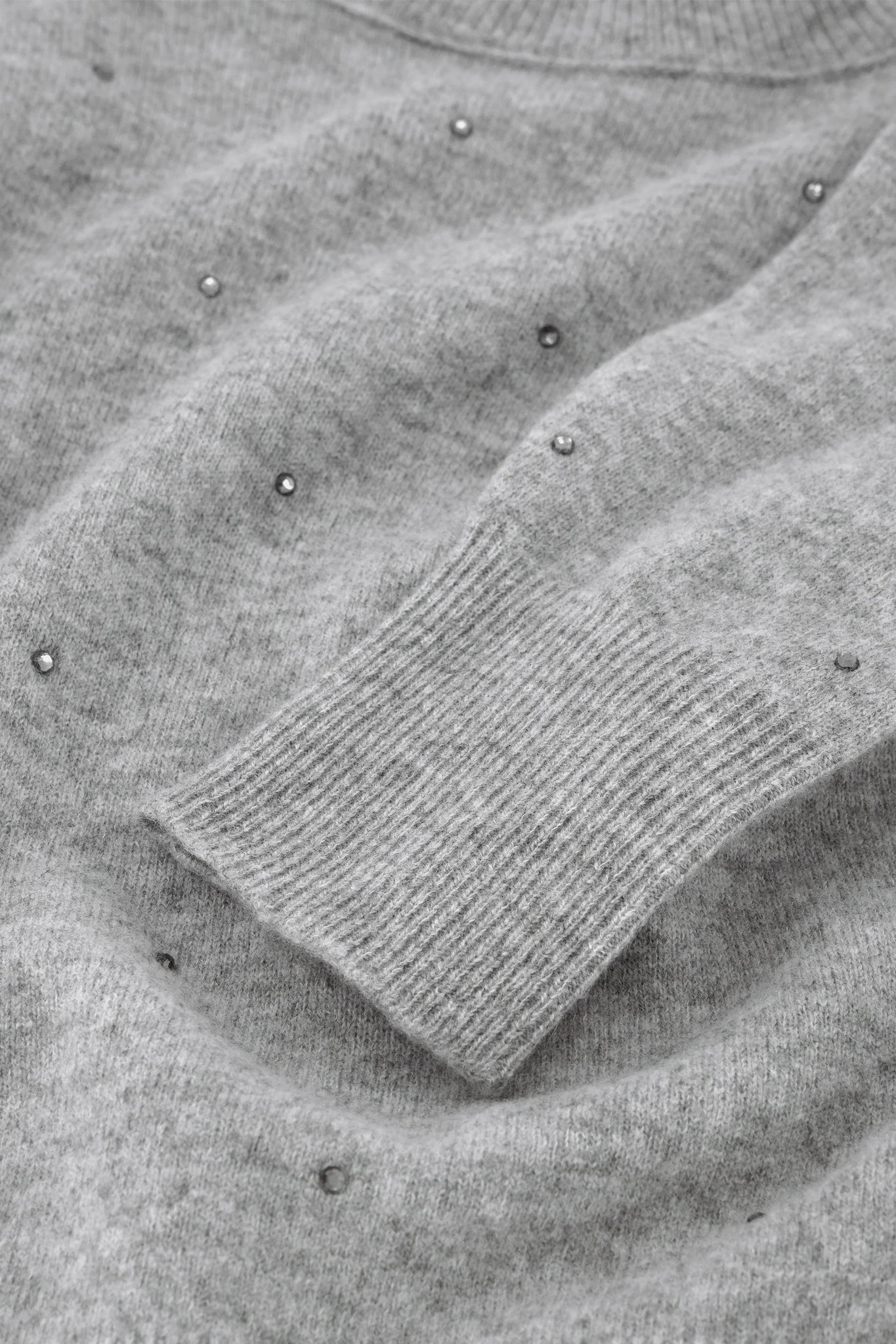 This loose-fitting grey pullover is crafted from soft fabric and features rhinestone embellishments across the chest for a subtle sparkle. With a relaxed silhouette, it offers comfort without compromising style, perfect for casual chic looks